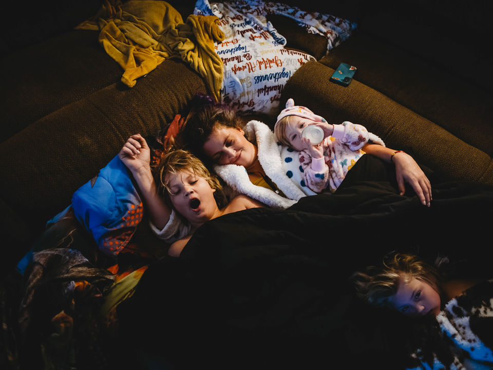 This is a photo series of real co-sleeping families, in their beds, as they are when they wake up in the morning.
